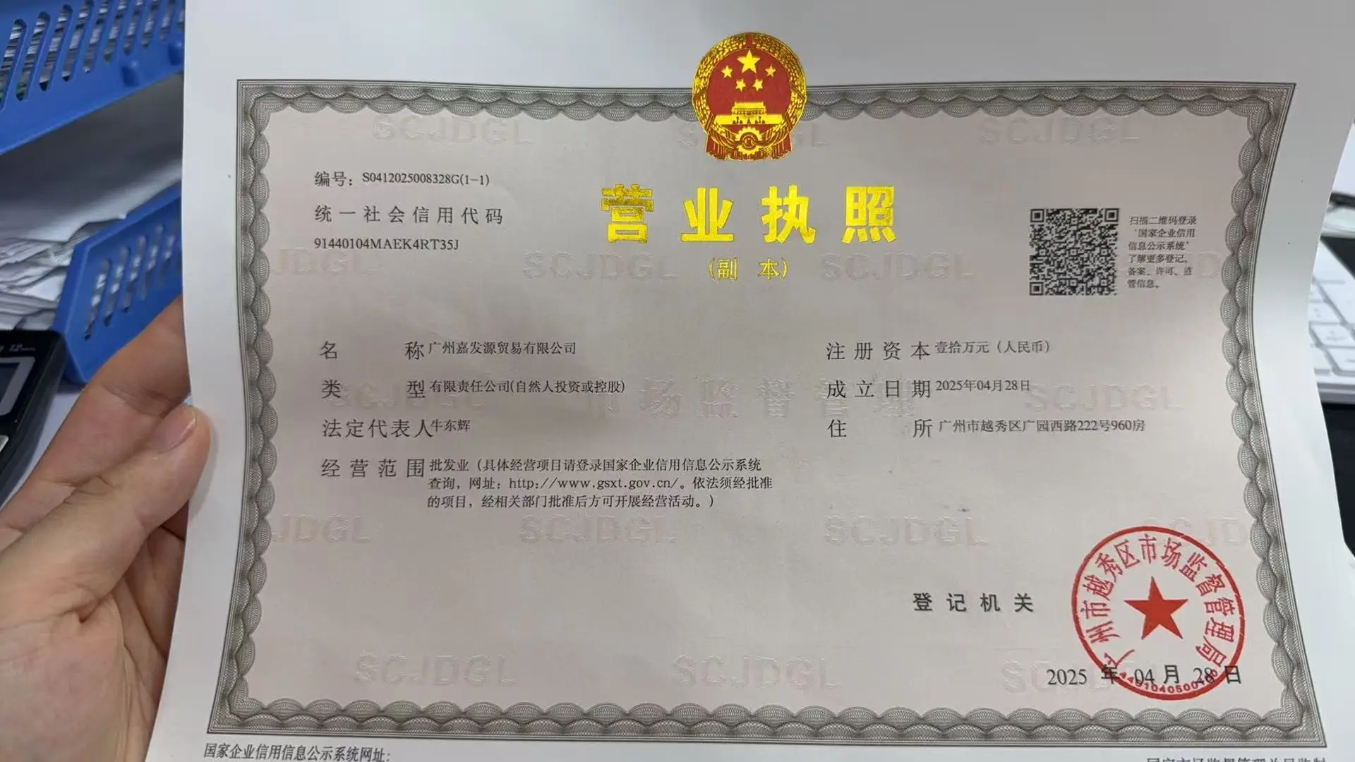 Registered address : Room 960, No. 222 Guangyuan West Road Guangzhou Guangdong China